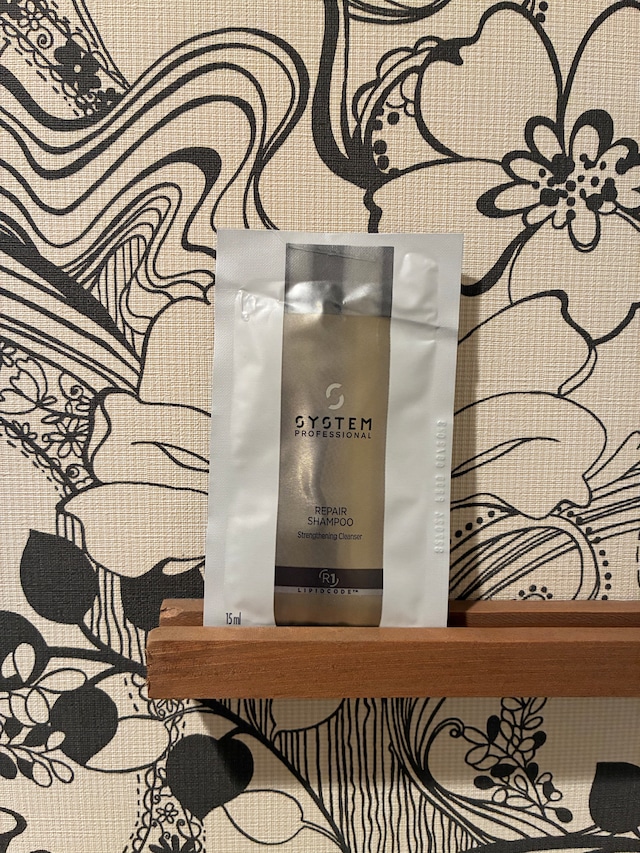 ✨️お試しにピッタリ✨ ### System リペア シャンプー パウチ 15ml 「System リペア シャンプー」は、ダメージを受けた髪を修復し、再生を促すために特別に開発されたシャンプーです。 傷んだ髪に潤いを与え、健康的で美しい髪への第一歩をサポートします。 ### DESCRIPTION 保湿力 ★★★★★ 修復力 ★★★★★ 手触り ★★★★★ ツヤ感 ★★★★☆ 厳選された成分で構成され、髪に必要な栄養をしっかりと補給します。 使うたびに感じる滑らかな手触りと、つややかな仕上がりはあなたの髪にさらなる自信をもたらします。 ### COMPARISON ダメージをリペアする「System リペア シャンプー」をぜひお試しください! お手軽な15mlサイズで、その効果をすぐに実感できます。 あなたの髪の健康をしっかりと見守る心強いアイテムです!
